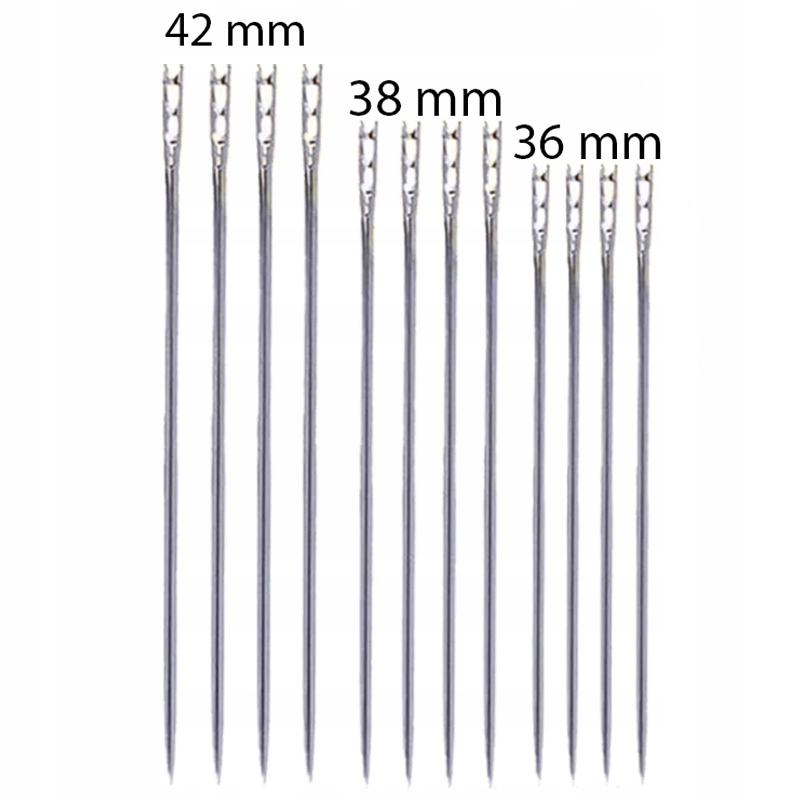 Набір із 12 голок — це дуже універсальний і функціональний інструмент для ручного шиття. У наборі є голки 3 різних довжин - 36, 38 і 42 мм. Шийте, штопайте та шийте швидко та легко без довгого затягування ниток. Завдяки цьому голки стануть в нагоді не тільки при ручному шитті тканини, але й при пришиванні ґудзиків, напівплоском шитті чи навіть акупунктурі.