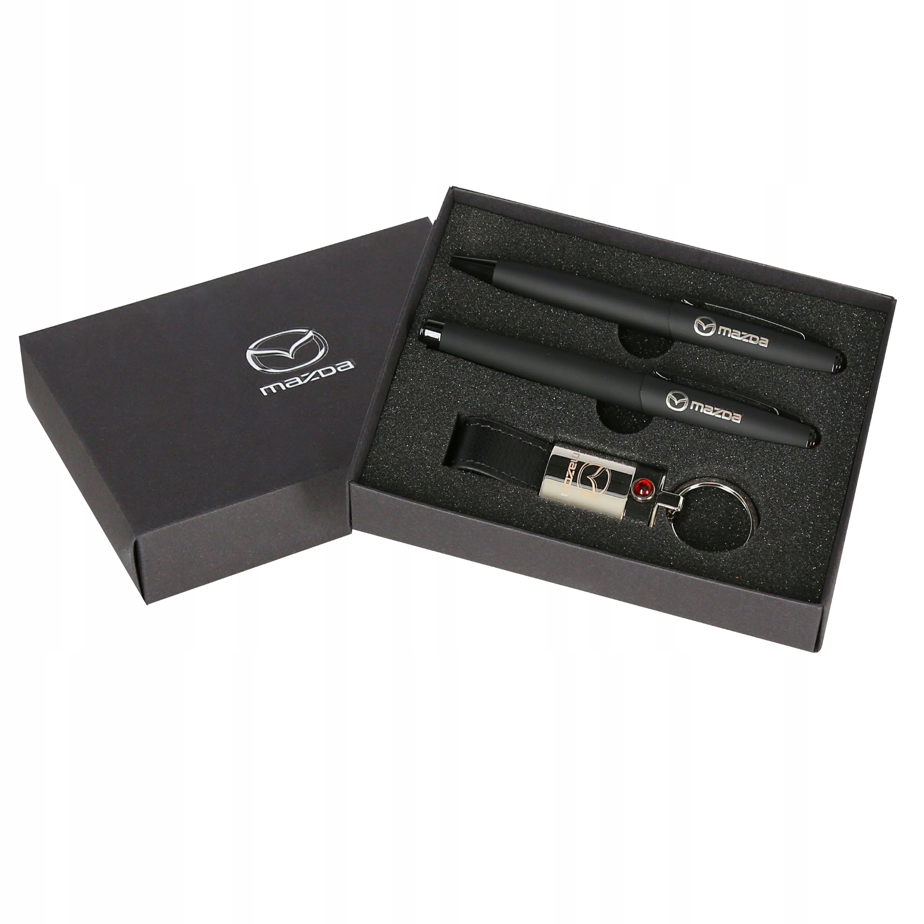 упакований в елегантну чорну паперову коробку з білим логотипом Mazda.