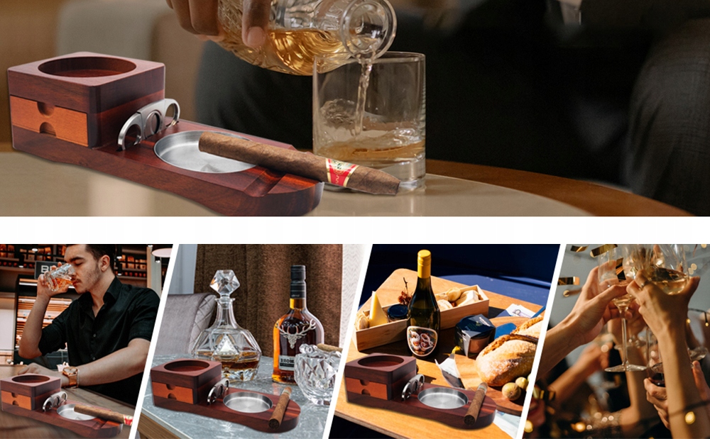 - Цей чоловічий подарунковий набір для сигар ідеально поєднує в собі сигарник, попільничка та підставка для віскі, що дозволяє вам насолоджуватися подвійним задоволенням від життя.