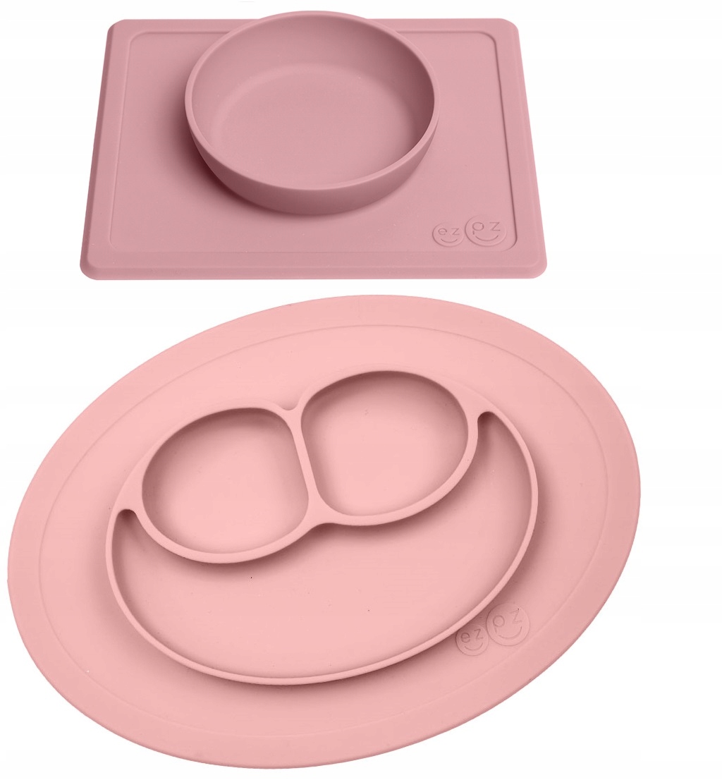 Набір EZPZ: силіконова миска з підкладкою 2в1 Mini Bowl і силіконова тарілка з підкладкою 2в1 Mini Mat, пастельно-рожевий