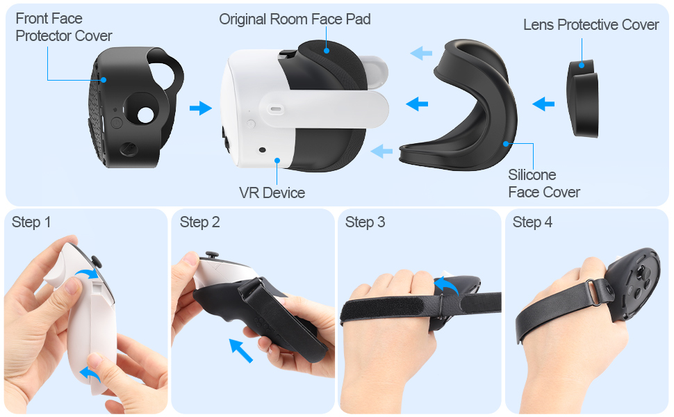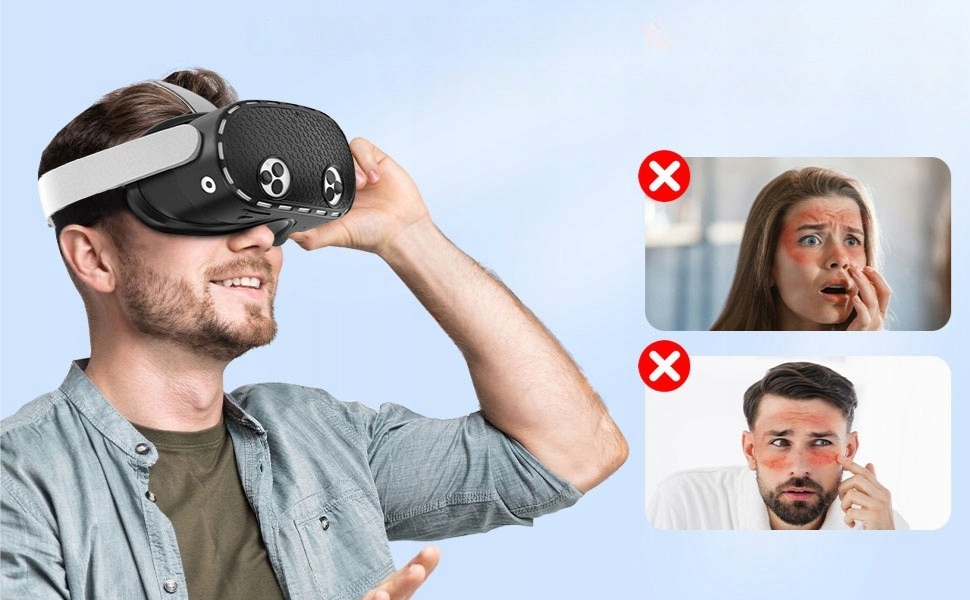 Комфорт, захист і гігієна. Силіконові чохли роблять гарнітуру віртуальної реальності зручнішою у використанні, захищають її від пошкоджень і легко чистять, забезпечуючи гігієну, навіть якщо гарнітурою користуються кілька людей.