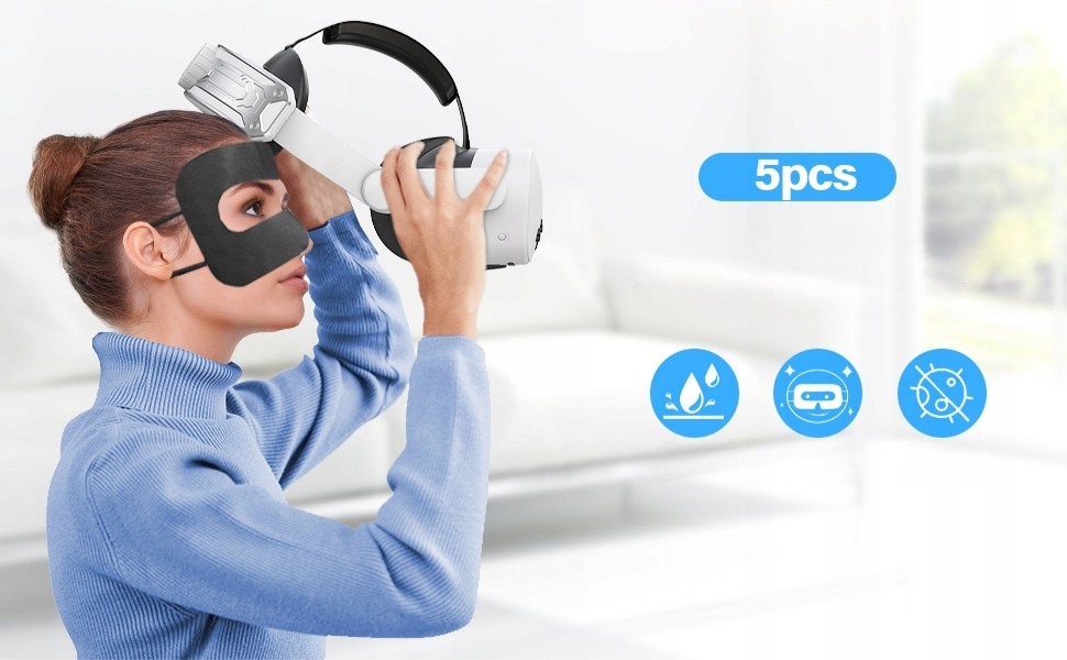 【Одноразовий чохол】Міцний нетканий матеріал захищає частину шкіри, яка безпосередньо контактує з обладнанням VR, від поту, шкірного сала, косметики та бруду. Ергономічна маска для очей м'яка і дихаюча. Слідкуйте за своєю гігієною. Вам не потрібно турбуватися про використання гарнітури віртуальної реальності з іншими.