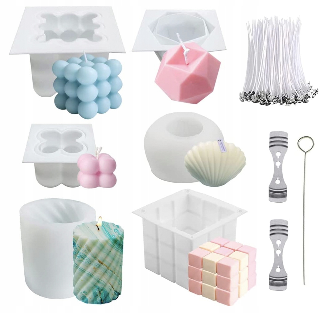 НАБІР СИЛІКОНОВИХ ФОРМ ДЛЯ ВИТРИВАННЯ 3D СВІЧОК ПРЕМІУМ 6 ШТ. + АКСЕСУАРИ
