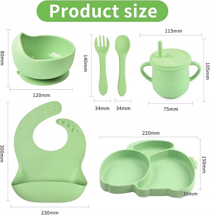 - Хороший помічник для незалежних тренувань з годування: їжу аксесуарів для немовлят виготовлені з силікону, дружні до зубів дітей раннього віку, не тріскають і допомагають ефективно тренуватися, щоб тренувати здатність ефективно їсти себе.