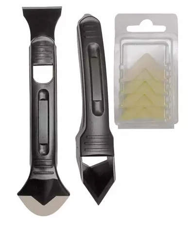 Набір для надання правильної форми силіконовими швами. У набір входить 5 формуючих насадок, виготовлених з гнучкого, стійкого до деформацій матеріалу. Сам корпус інструменту, без кріплення відповідного наконечника, можна використовувати для видалення старих силіконів. Інструмент виготовлений з міцного, хімічно стійкого полімеру.