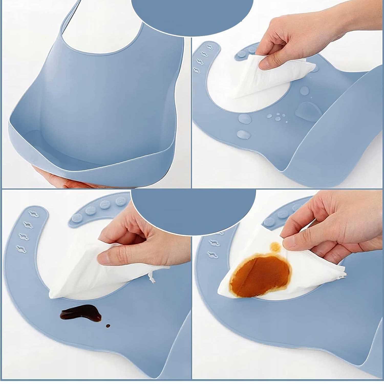 🍽️Силіконовий нагрудник з регульованим нагрудником кнопка та великий піддон для крапель вловлюють їжу, яка випадає з рота дитини, і запобігають її падінню на підлогу та одяг.