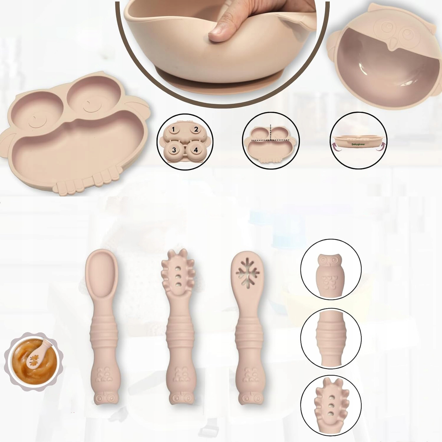 НАБІР СИЛІКОНОВОГО ПОСУДУ ДЛЯ МАЛЮКІВ 8 ЕЛЕМЕНТІВ ТАРІЛКА, ГРУЖКА, НАЛЮГВНИК