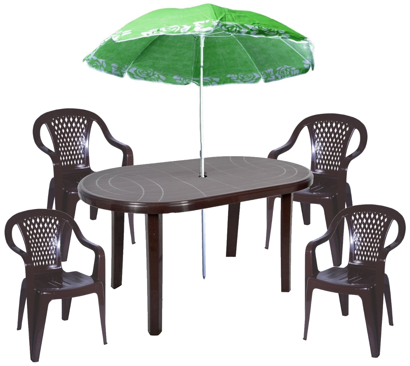 НАБІР СИЛЬНИЙ КОРИЧНЕВИЙ 4+1 ВЕЛИКИЙ СТІЛ + САДОВА ПАРАСОЛЬКА