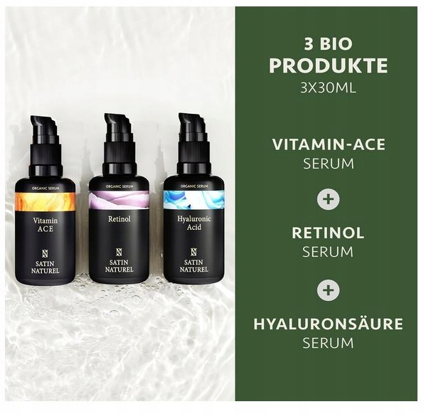 - Все, що вам потрібно – проти старіння! 3 високоефективні сироватки для щоденного використання охоплюють весь спектр процедур догляду: сироватка з біовітаміном С (вітамін А С Е) забезпечує сяючу шкіру та ідеальне сяйво, сироватка з гіалуроновою кислотою зволожує та оптимально наповнює шкіру зсередини, а сироватка з ретинолом забезпечує гладкий рівний колір обличчя.