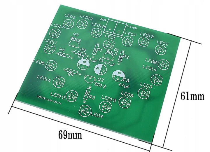Системи мають на пластині схему друкованої збірки. Вам потрібно звернути увагу на полярність за такі елементи, як конденсатори, діоди, транзистори. У випадку світлодіодів довша нога - це плюс +, більшість елементів описали параметри на корпусі. Резистори можуть мати позначення смужок, їх опір та толерантність можна прочитати за допомогою калькуляторів, доступних в Інтернеті або вимірюванням лічильника. Порядок складання зазвичай є довільним, залежно від системи, ми спочатку встановлюємо найменші елементи. > Завантажити Посилання: