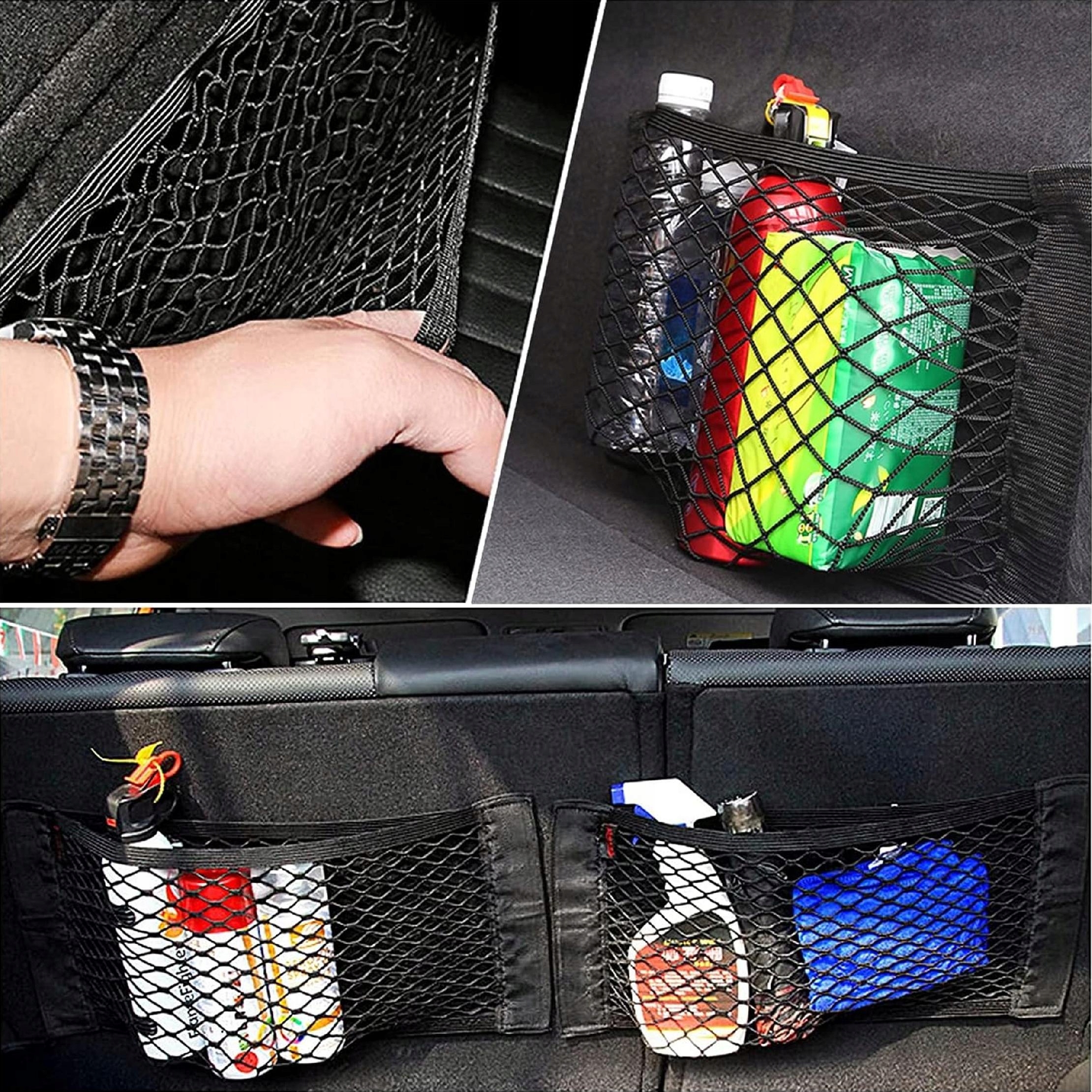 ⭐ ⭐ сітка для магістралу автомобіля - 4 шт. Завдяки гнучкій конструкції "липучки", ці мережі дозволяють розробити невикористаний простір у машині, забезпечуючи стабільне місце для зберігання різних предметів. Ідеально підходить для багажника, за колісною панеллю або за спиною сидіння, ця сітка змусить ваші речі залишатися на місці навіть під час динамічного водіння.