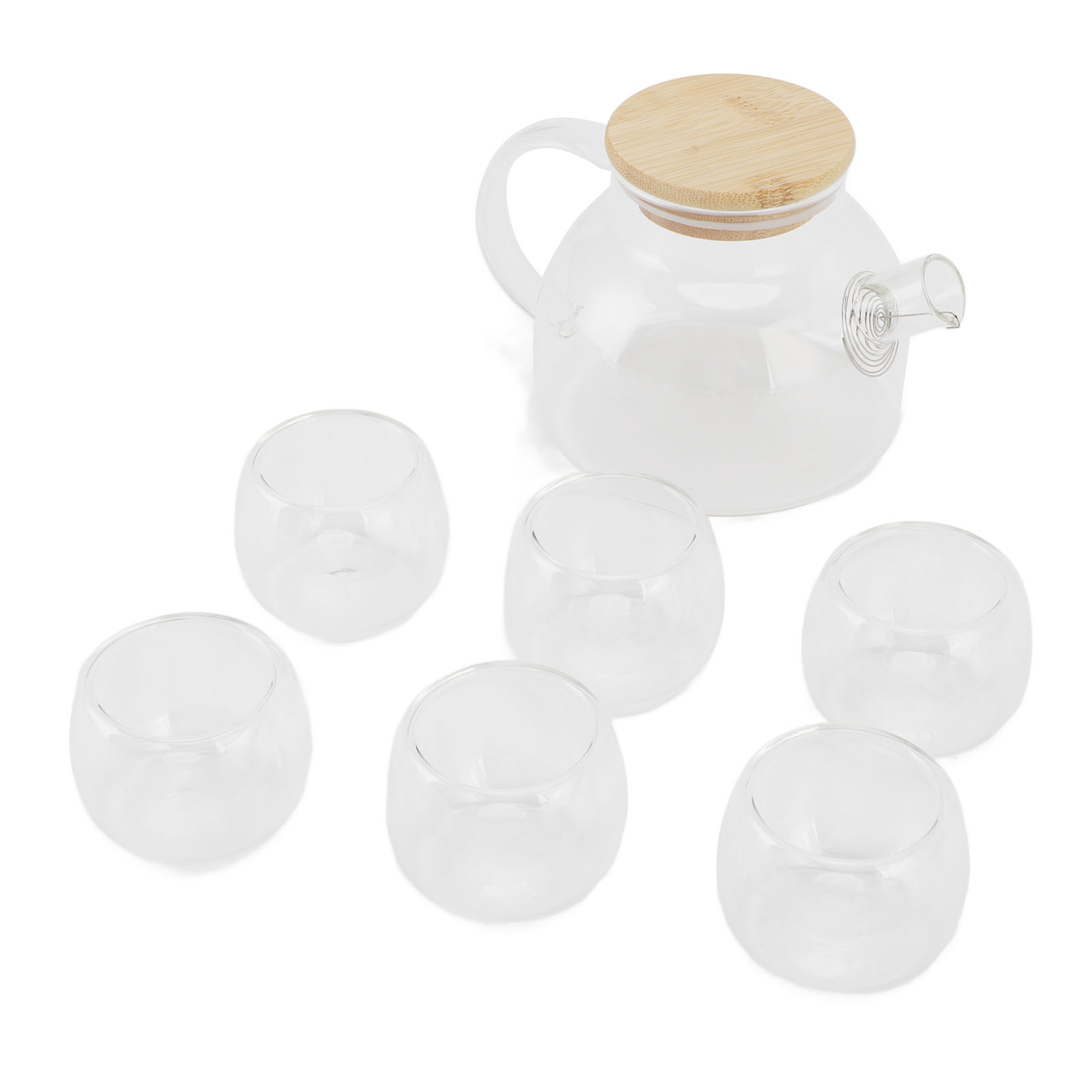 4. Двошарові чайні чашки: набір включає шість маленьких чайних чашок об’ємом 80 мл, кожна з яких має подвійний шар для ізоляції. Вони виготовлені з високоякісного боросилікатного скла, що забезпечує тривалий термін служби.