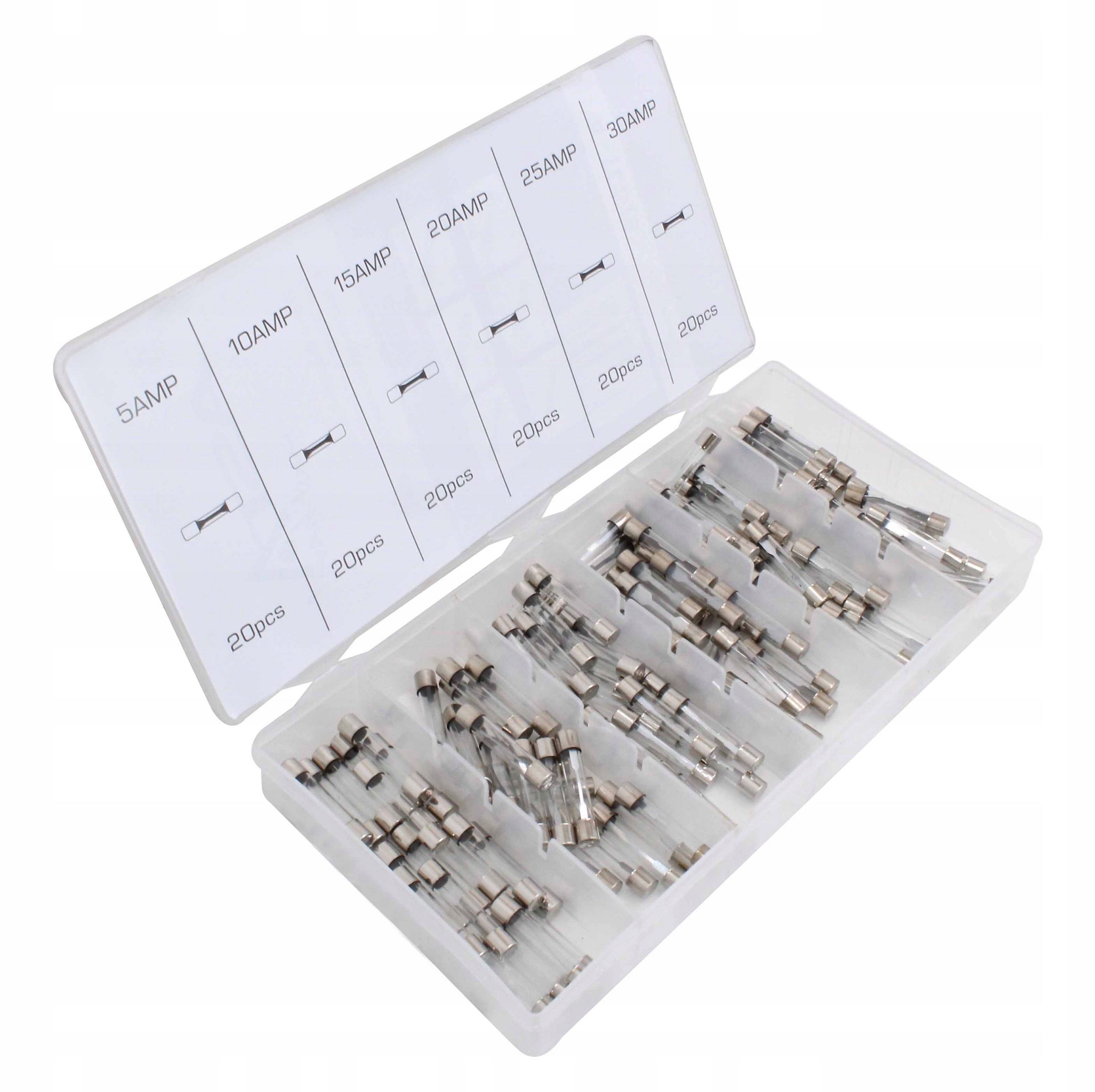 НАБІР СКЛЯНИХ ЗАПОБІЖНИКІВ, довжина 32 мм - набір 120 шт.