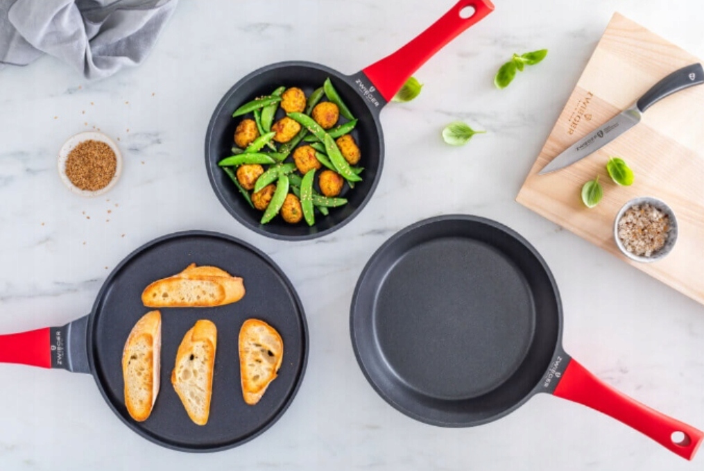 Сковороди Zwieger Obsidian з литого алюмінію. Внутрішня частина посуду покрита інноваційним антипригарним покриттям Greblon від WEILBURGER. Завдяки своїм унікальним властивостям, які підвищують стійкість до подряпин, це покриття використовується в посуді високого класу. Термостійкий силіконовий лак, який покриває сковороду зовні, надовго зберігає естетичний вигляд. Крім того, сковороди Zwiegerчудово проводять і акумулюють тепло.