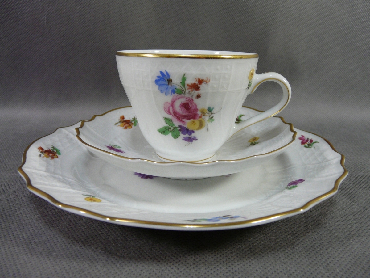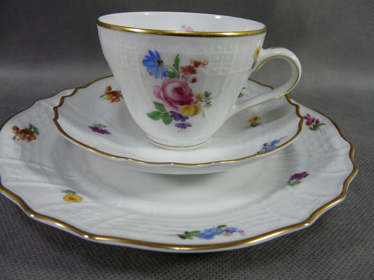 ! Маленькі квіти на чашках і пластинах розташовані симетрично, але в різних системах