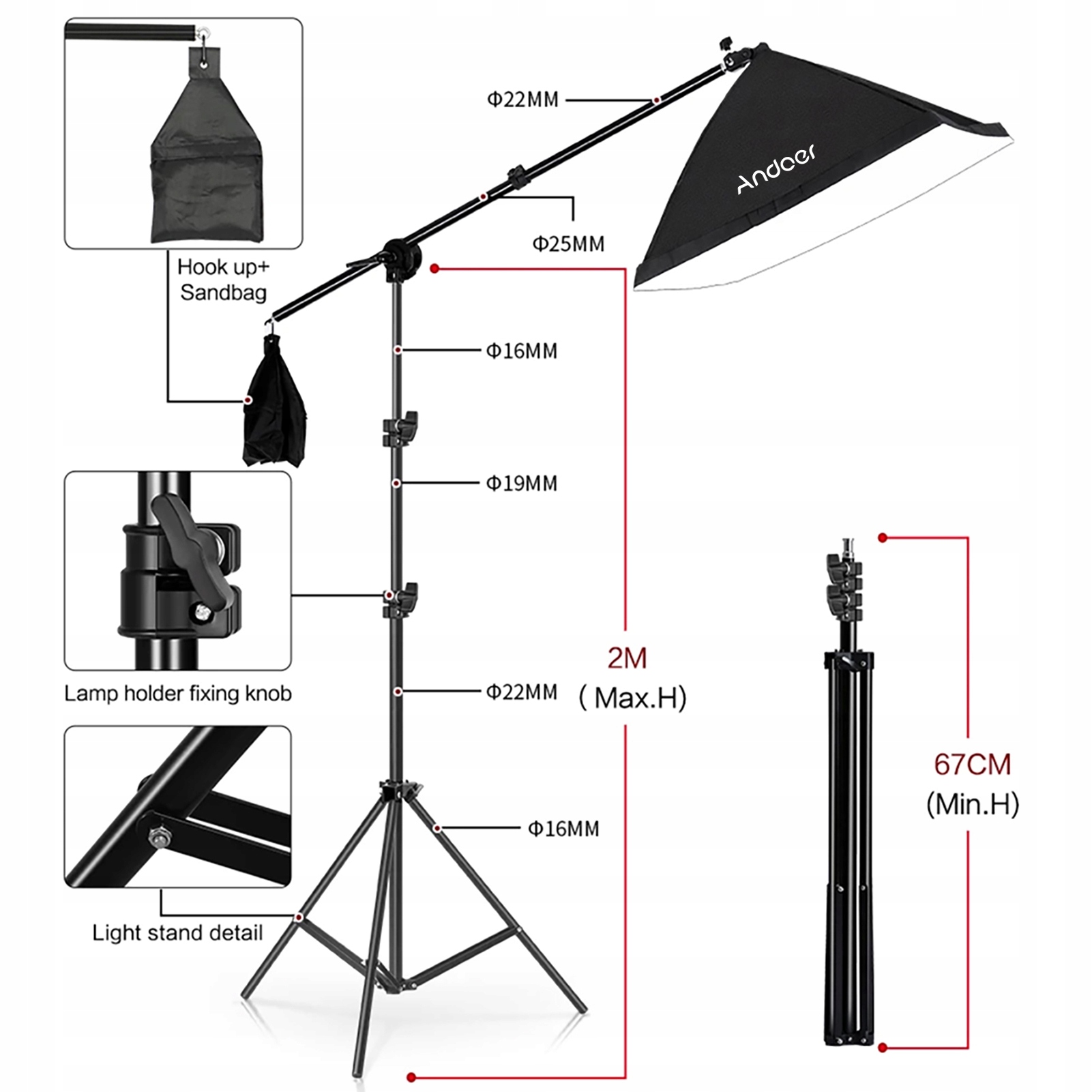 【Металева підставка для освітлення】 Підставка для освітлення виготовлена з алюмінієвого сплаву преміум-класу та може подовжуватися до 2 м; Стабільна конструкція з 3 ніжками та міцна система фіксації роблять його безпечним і надійним у використанні.