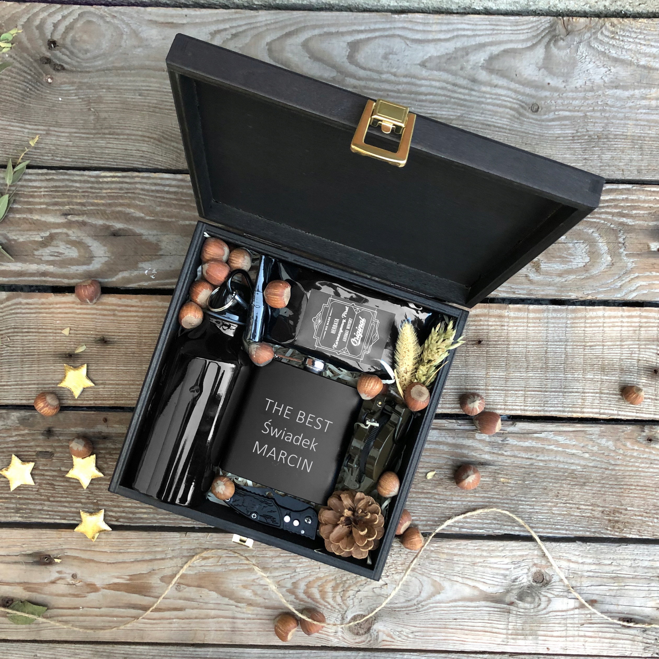 Красиві подяки Свідку, закриті в дерев'яній скриньці, - чудовий спосіб висловити свої справжні почуття! Без Свідка весілля не відбудеться, і хоча всі знають, що він відіграє надзвичайно важливу роль, Варто подякувати йому за це, подарувавши шикарний подарунок. Наша пропозиція щодо свідка — набір «Свідок мандрівника». КУПУЮЧИ В НАС, ВИ ОТРИМАЄТЕ: