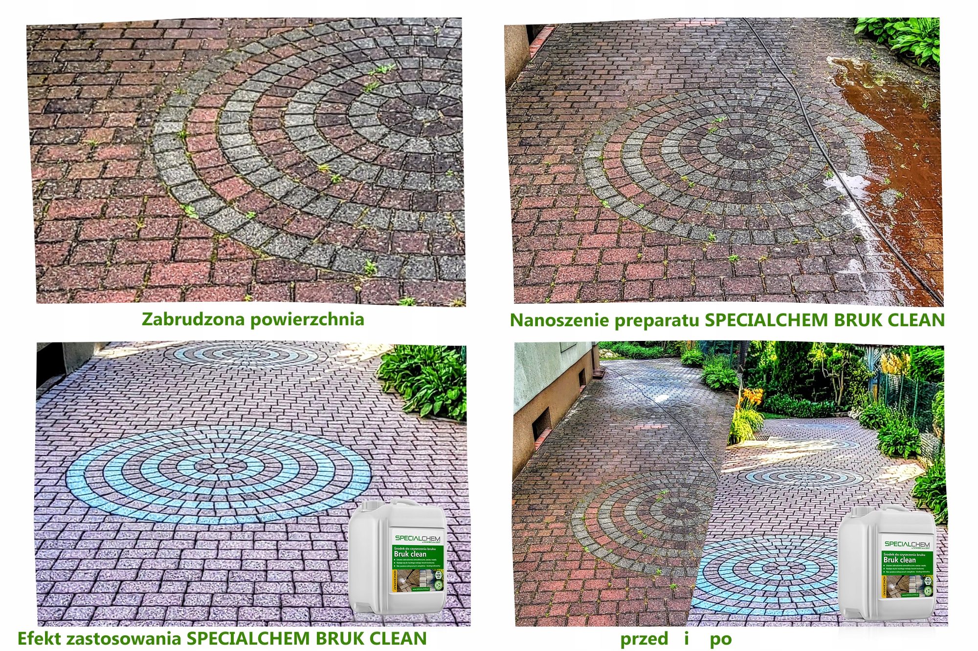 SPECIALCHEM BRUK CLEAN - це інноваційний засіб для чищення тротуарів, який забезпечує ефективне та легке очищення поверхні. Завдяки своїй професійній формулі він чудово справляється навіть із найстійкішими забрудненнями, такими як атмосферні відкладення, кіптява чи плями рослин. Безпечний для матеріалу та користувача, SPECIALCHEM BRUK CLEAN не спричиняє зміни кольору та пошкоджень, а його біорозкладні інгредієнти роблять його екологічно чистим. Ідеально підходить для бруківки, під'їздів і парковок, він поєднує ефективність і ефективність, гарантуючи збереження природного кольору і структури матеріалу. Виберіть SPECIALCHEM BRUK CLEAN - професійний препарат, який освіжить ваші поверхні за кілька простих кроків!