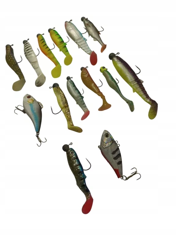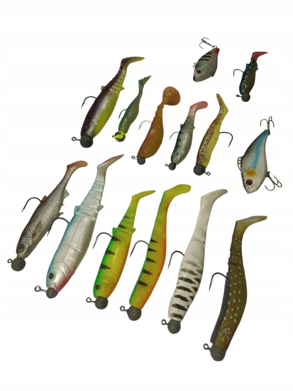 Практичний набір різних гумових приманок з головою та гачками, ідеально підходить для риболовлі для хижаків, таких як щука, окуня або Зандер. Набір також включає зручну коробку для зберігання, яка дозволяє підтримувати порядок та швидкий доступ до приманок під час риболовлі.