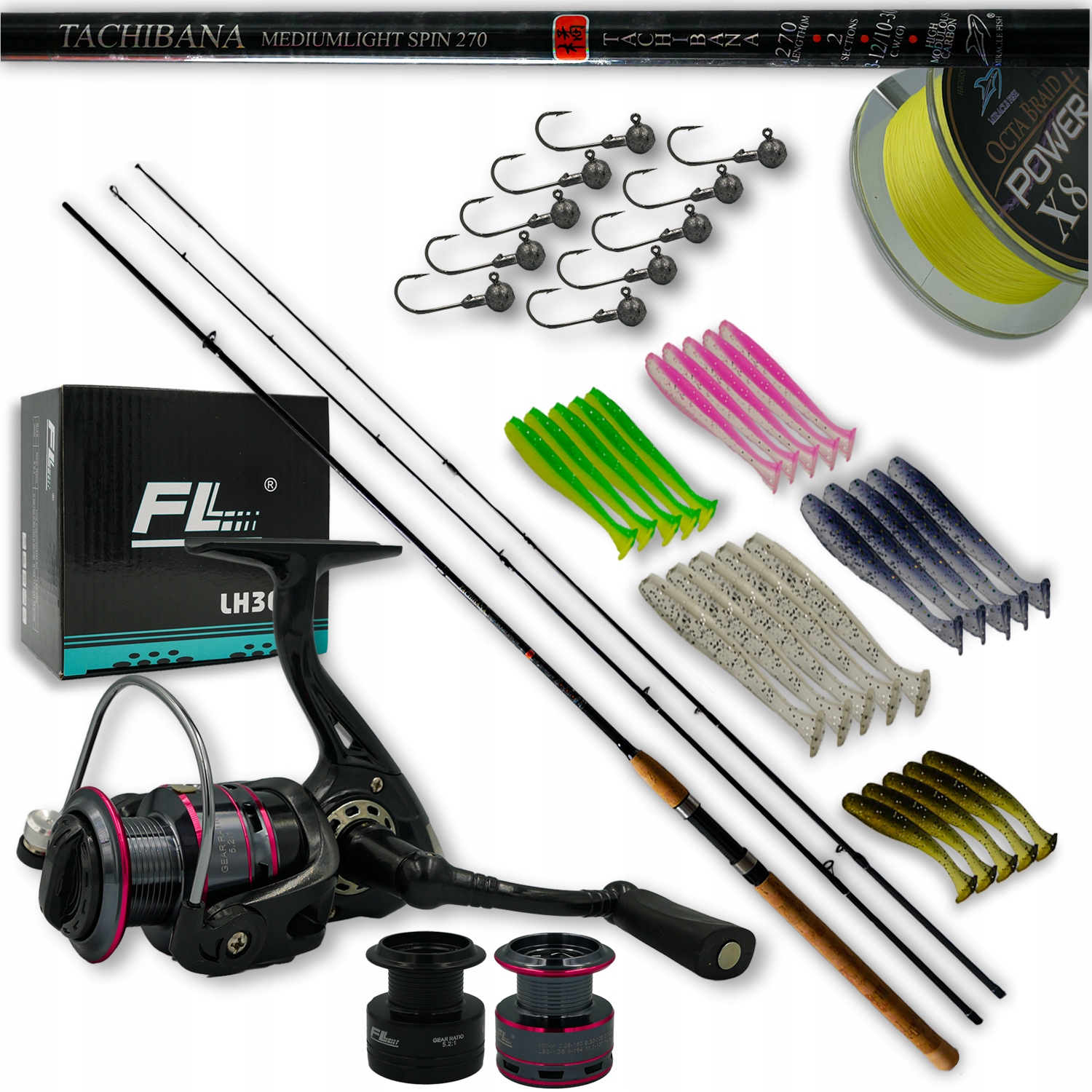 НАБІР СПІНІНГ ВОДУКЛИЩА 2в1 КОТУШКА БРАЙД ЛОСІНКА ГОЛОВКИ ДЛЯ ПРИНАБ