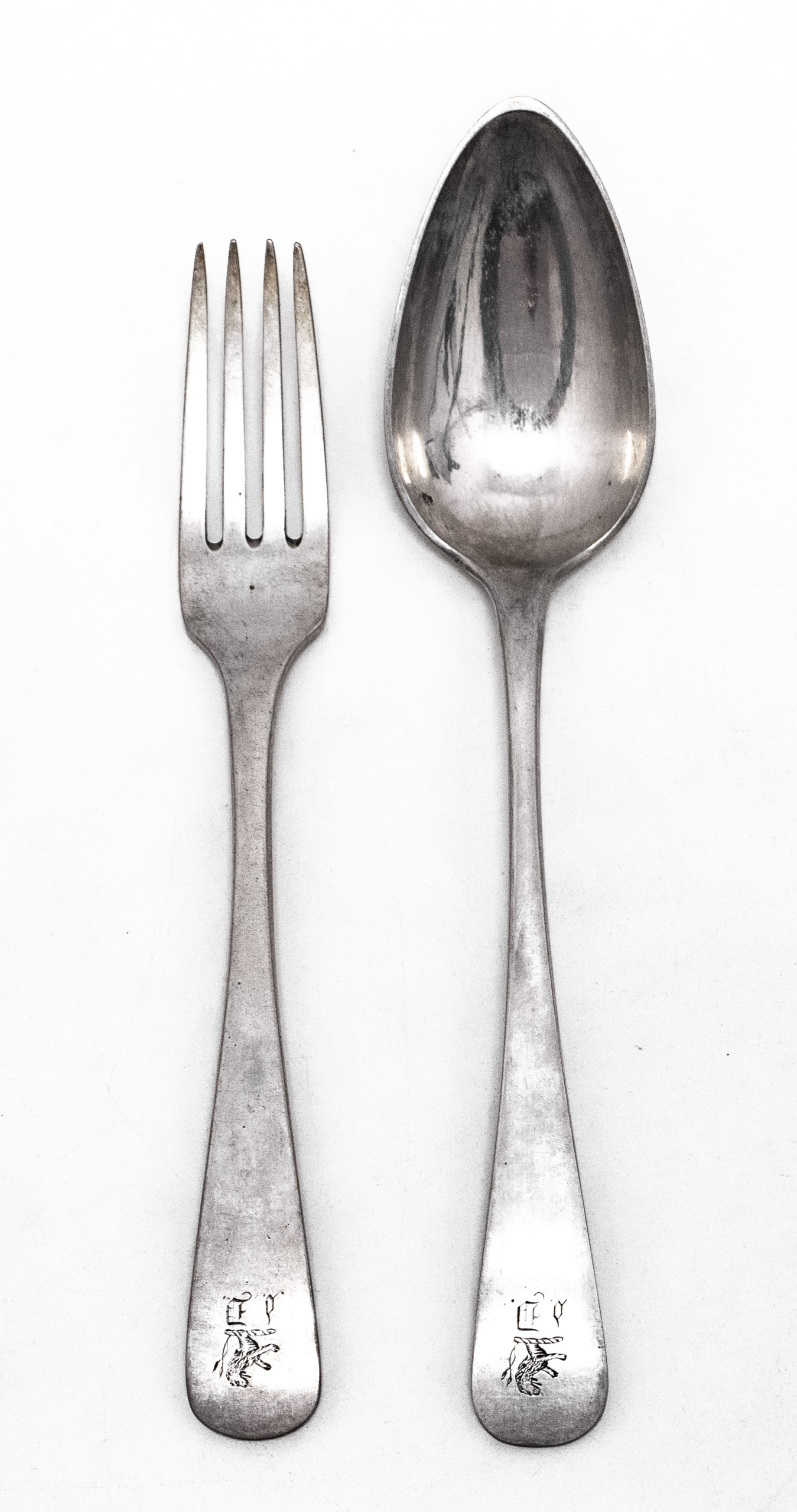 Набір аркадних виделок для столових приладів та ложки, виготовленої з срібла. Немає тесту, панк на звороті.