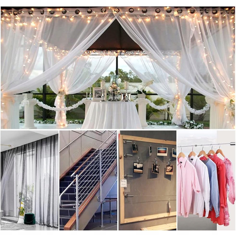 Набір дротяних мотузок підходить для вуличних мотузок для наметів, білизняних мотузок, допоміжних засобів для лазіння рослин, садових огорож, вуличних підвісних люстр, мотузкових балюстрад і інші.