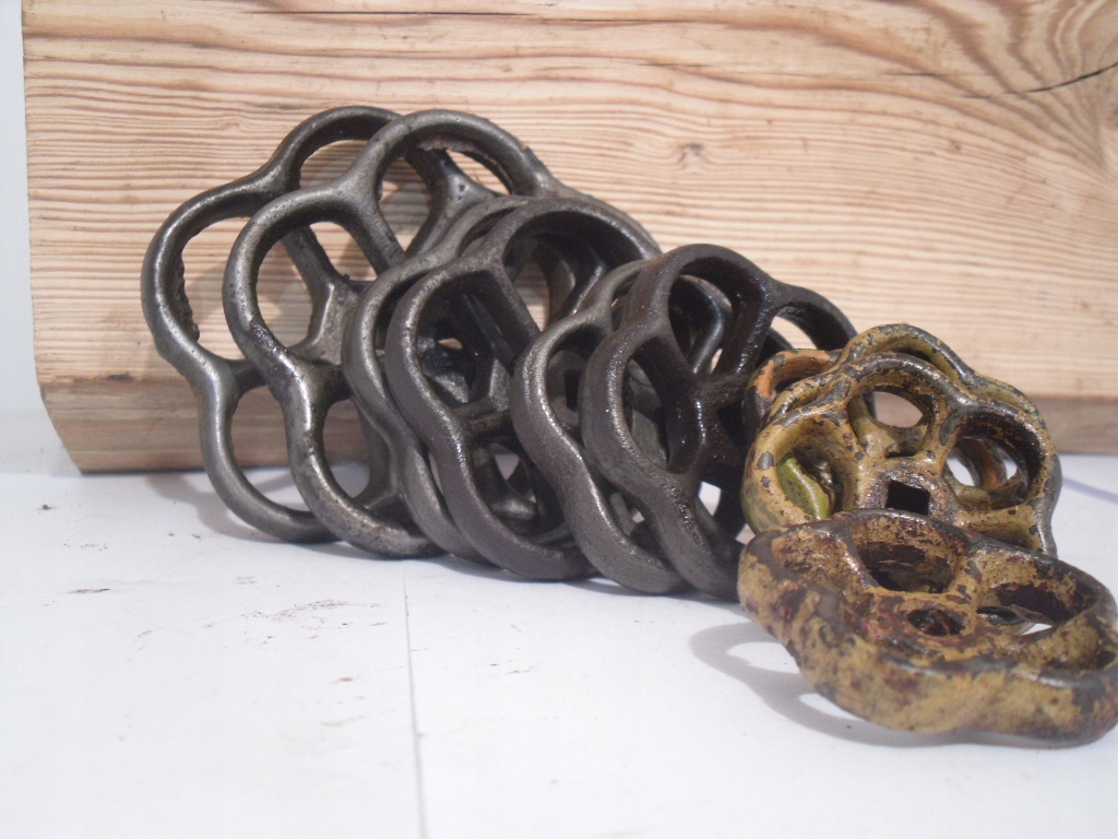 Ласкаво просимо на мій аукціон. На аукціонах я зазвичай пропоную вам речі періоду Польської Народної Республіки. На цьому аукціоні я пропоную ОРИГІНАЛ старих ручок клапанів з моєї великої колекції. Набір складається з 8 ручок різного розміру, але попарно, тобто є дві ручки заданого розміру (2 штуки) плюс 2 штуки найменших безкоштовно. Загалом ви ставите ставку на 10 шт. ручок. Їх можна використовувати в саду або вдома як елементи вішалок, ручок і т. д. Клапани чисті, їх можна пофарбувати в улюблений колір або захистити тільки лаком, звичайно після знежирення. На деяких ручках видно потерту стару фарбу, місцями досить товсті шари, я залишив так, тому що це надає їм шарму. Настроюється. Дивіться фото.