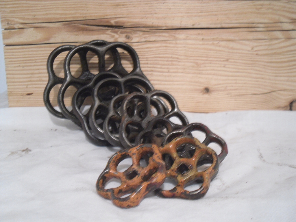 Ласкаво просимо на мій аукціон. На аукціонах я зазвичай пропоную вам предмети з періоду PRL. На цьому аукціоні я пропоную оригінальні ручки зі старих клапанів з моєї великої колекції. Набір складається з 8 ручок різних розмірів, але парами, тобто ручки заданого розміру - два шматки / 2 шт. / Плюс 2 штуки найменших у вільному. Разом ви пропонуєте 10 ручок. Їх можна використовувати в саду або вдома як елементи вішалок, ручок тощо. Клапани очищаються, ви можете пофарбувати їх у улюблений колір або захищений лише лаку, звичайно, після зменшення. На деяких ручках можна побачити стару фарбу, досить товсті шари місцями, я залишив її, бо це дає їм чарівність. Можливість конфігурації. Дивіться фотографії.