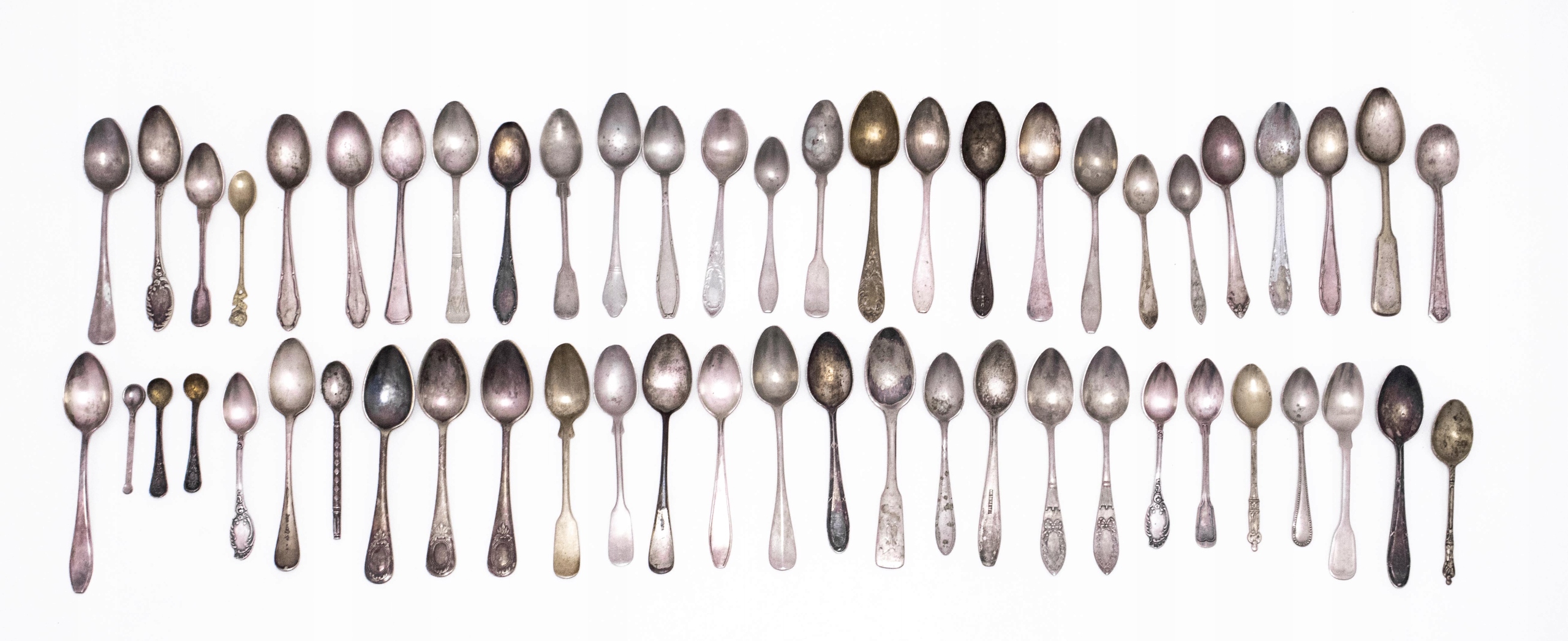 - столові прилади походять з різних наборів (вони відрізняються один від одного за малюнком, розміром та металом)