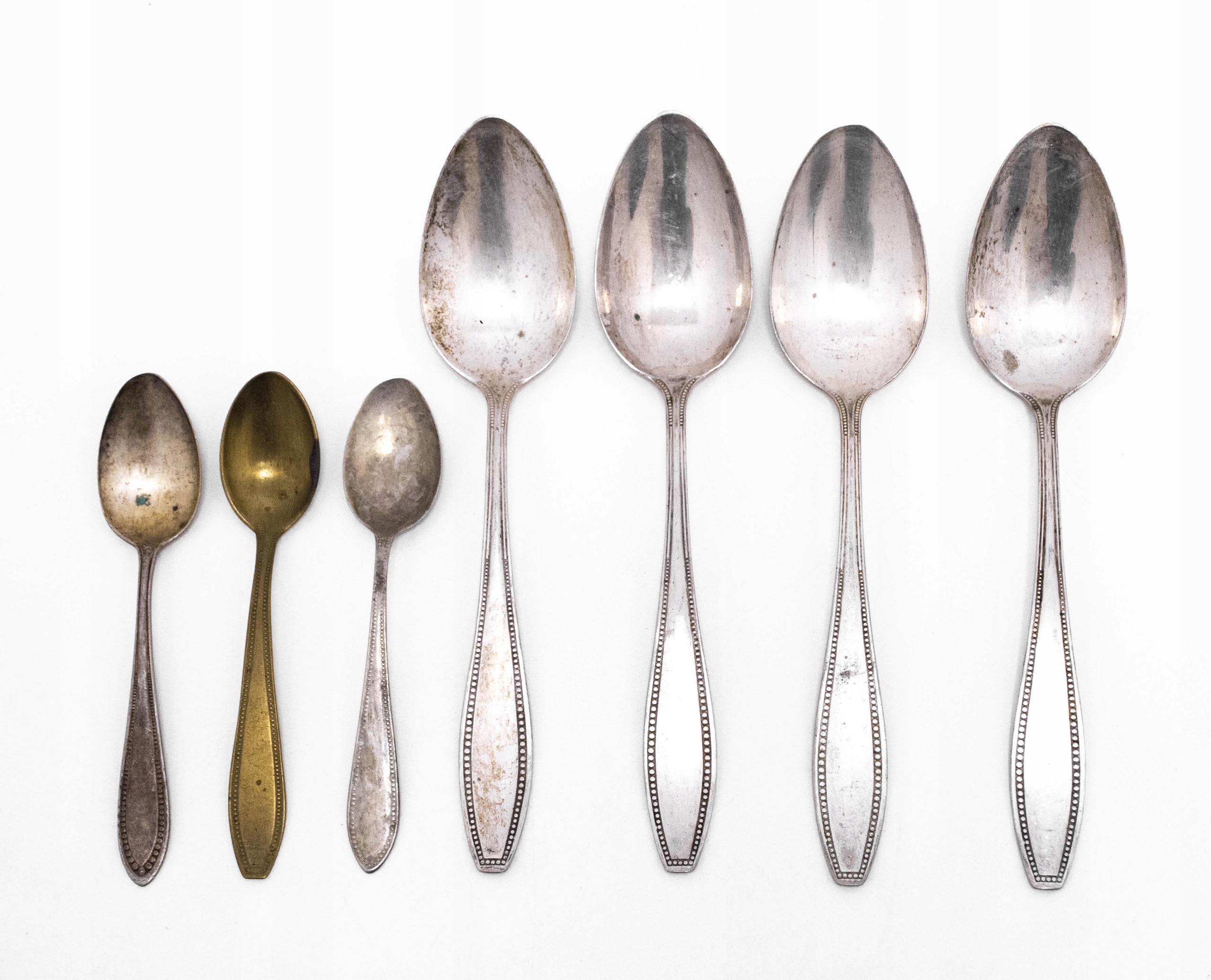 - Столові прилади надходять з різних наборів (вони відрізняються один від одного за малюнком, розміром та металом)
