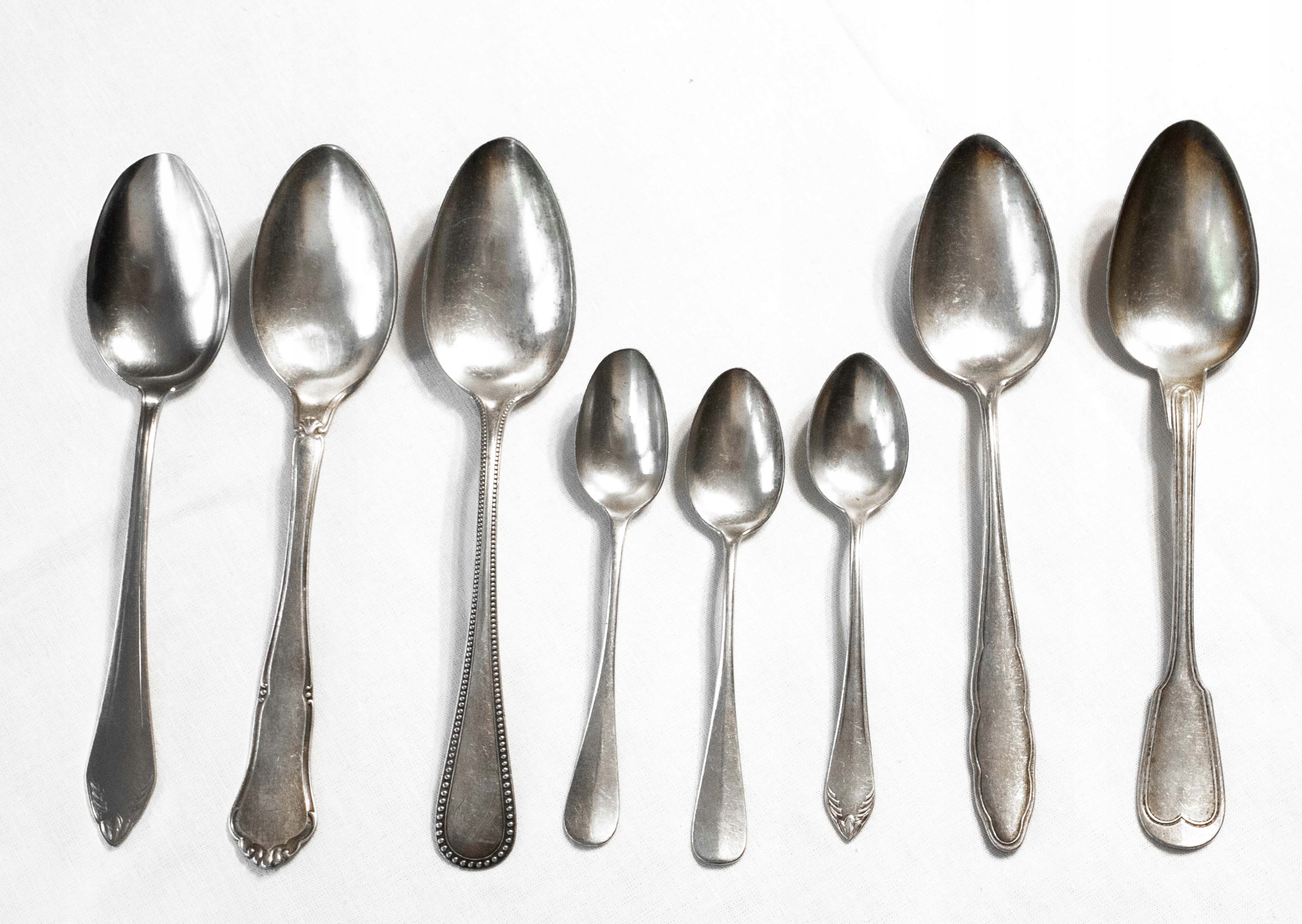 Столові прилади поставляються з різних наборів, вони відрізняються відрізняються один від одного розміром і малюнком. Одна з ложок сталева (перша зліва).