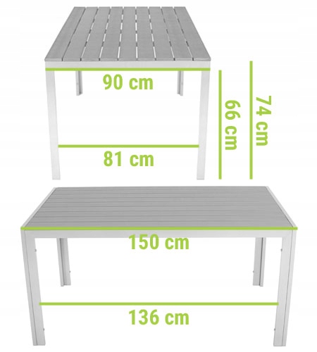 Стільниця садового столу складається з композитних дощок WPC із полістиролу. Він стійкий до пошкоджень і легко чиститься, просто протріть його вологою ганчіркою.