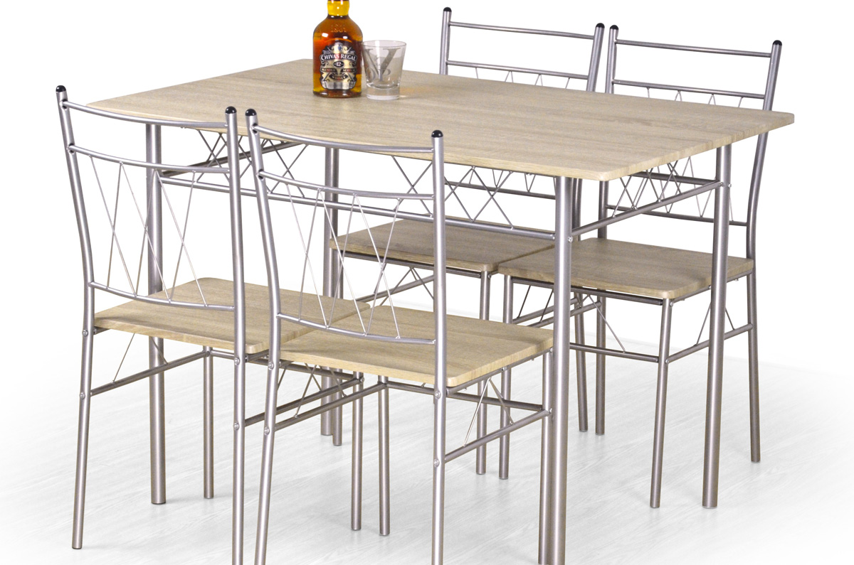 Прекрасний стіл, встановлений у мінімалістичному стилі. Це чудово виглядає на кожній маленькій кухні, їдальні чи вітальні. Перевірте пропозицію Elior і перегляньте показ останнього набору Danter (таблиця + 4 стільці). Уявіть сьогодні, як ефективно вони представляли б у вашому інтер’єрі ..