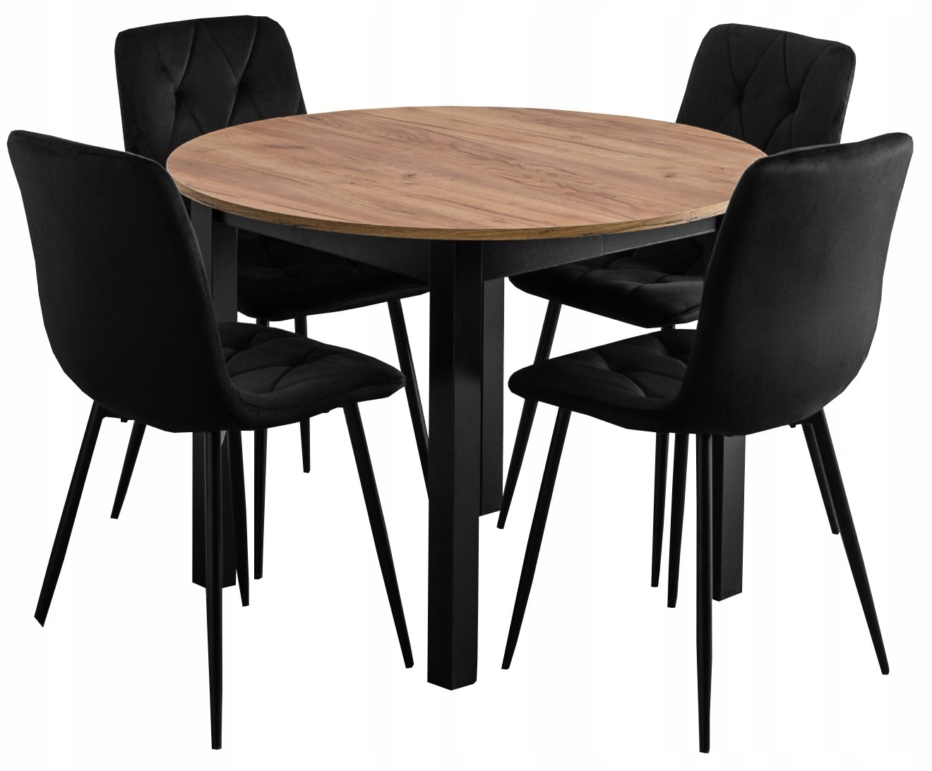 - Стіл HARRY із дубово-чорним крафтом + 4 крісла ROBIN чорного кольору