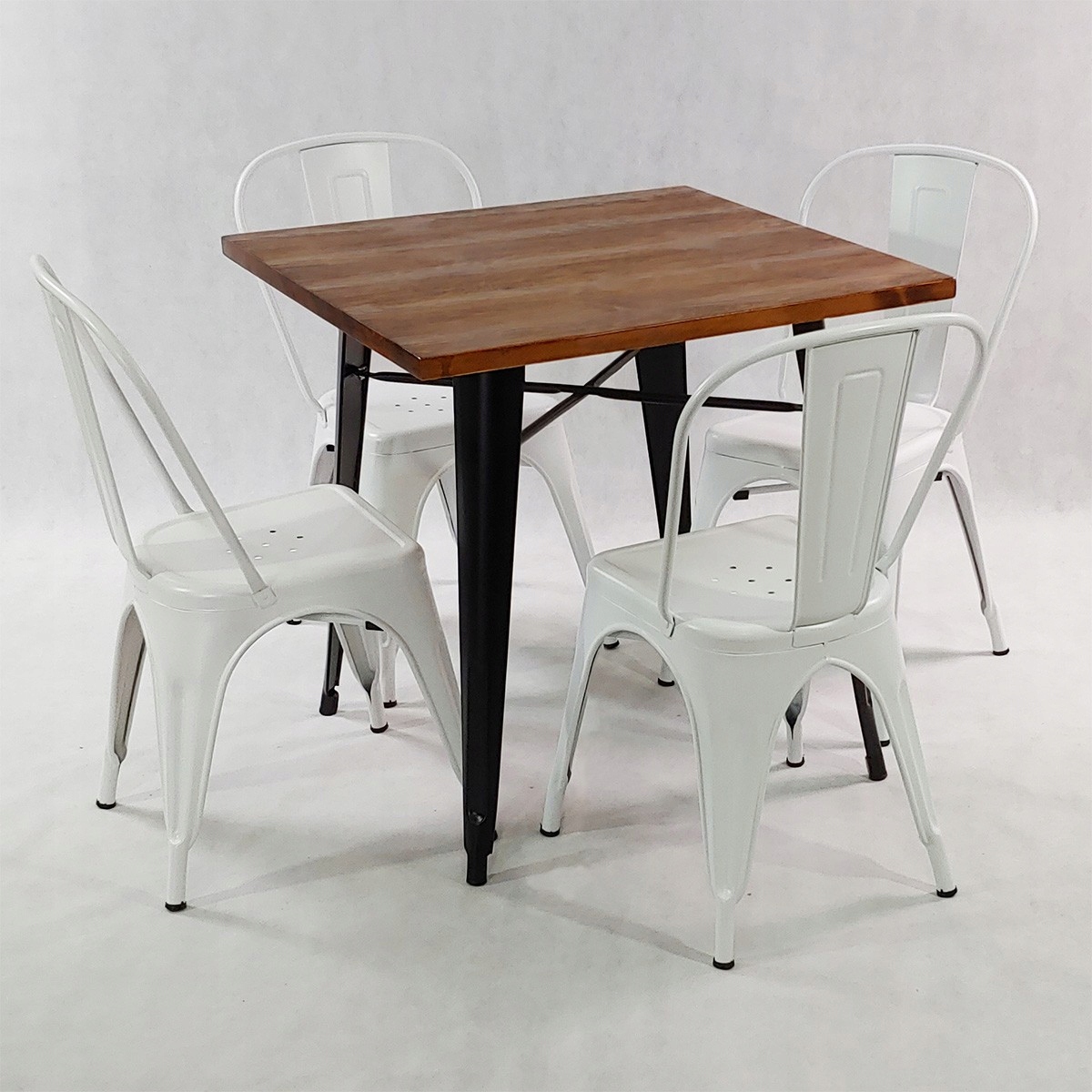 Набір столика Tolix з 4 білими металевими стільцями Tolix
