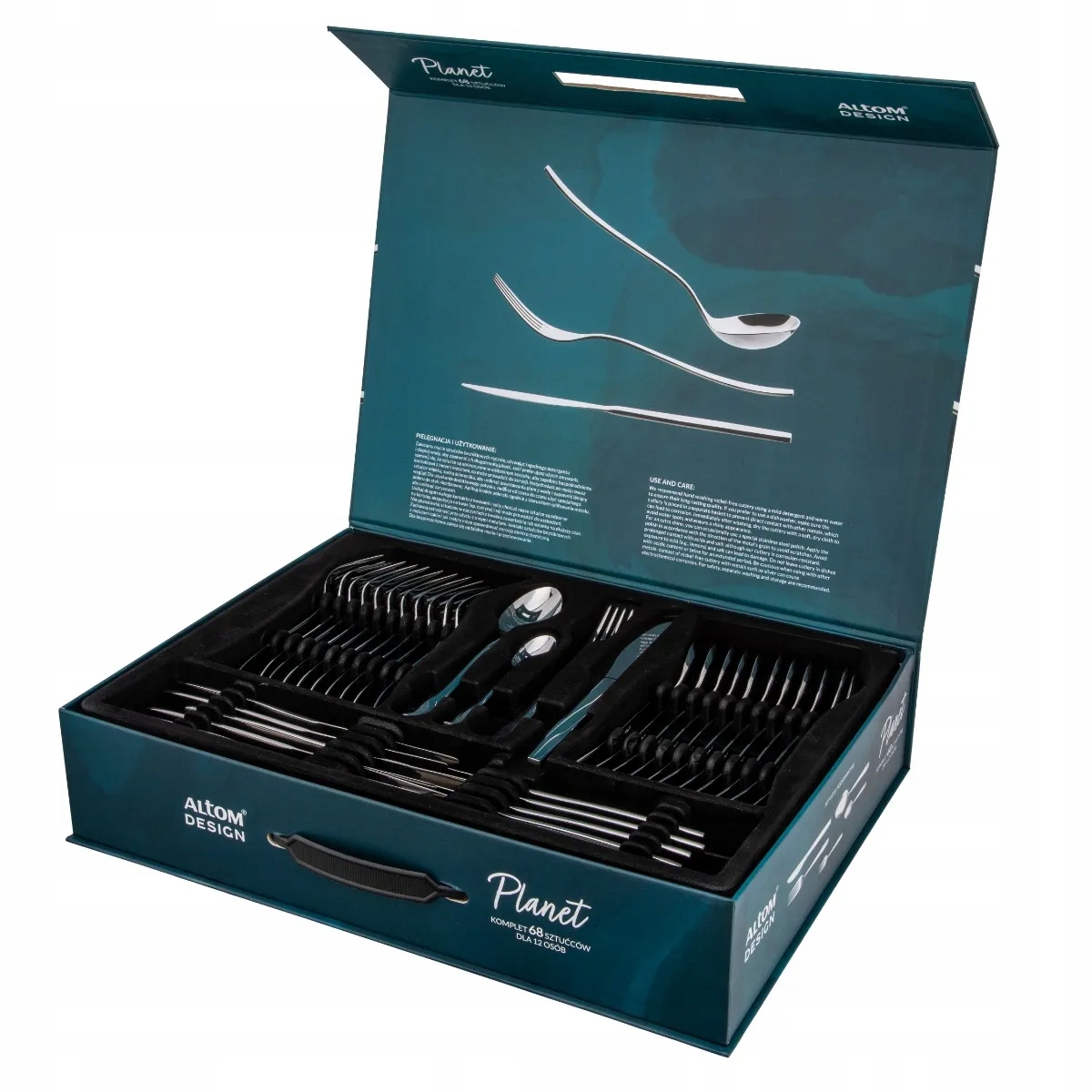 Просматривая «Набор столовых приборов из нержавеющей стали на 12 человек Altom Design Planet 68 предметов», вы можете быть уверены, что данный товар из каталога «Наборы столовых приборов» будет доставлен из Польши и проверен на целостность. В цене товара, указанной на сайте, учтена доставка из Польши. Внимание!!! Товары для Евросоюза, согласно законодательству стран Евросоюза, могут отличаться упаковкой или наполнением.