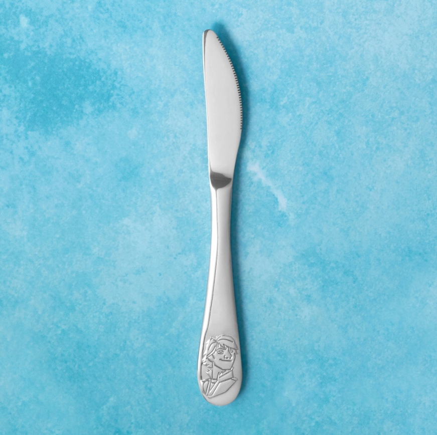 Набір містить ніж, виделку, ложку та чайну ложку.