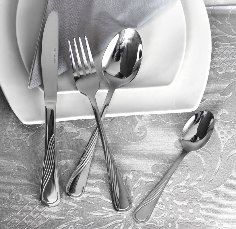 Кожен столовий прилад із набору Karl Hausmann Monica виготовлений із міцної полірованої нержавіючої сталі та привертає увагу своєю простотою , зручна форма. Крім того, усі столові прилади з набору Monica можна мити в посудомийній машині, що робить його ідеальним вибором для сучасної кухні.