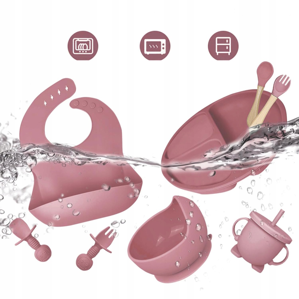 Набір страв з клейкими дисками для немовлят. Силіконовий рожевий