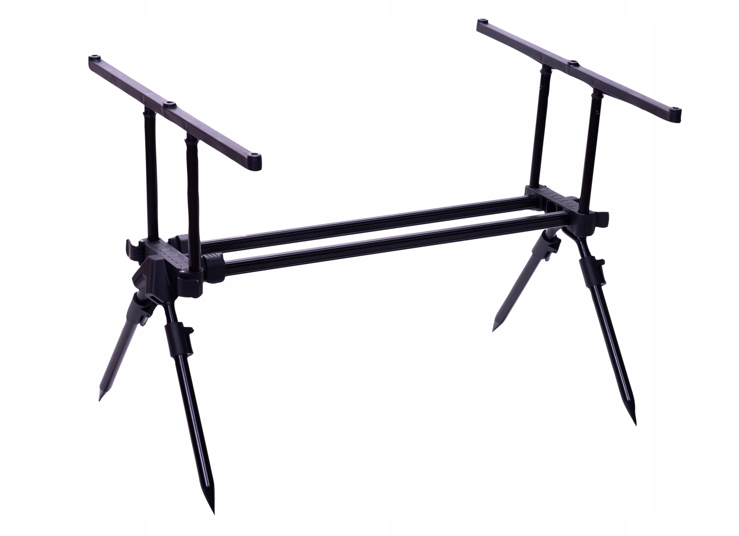 Універсальний родпод для тих, хто шукає стабільний штатив, з можливістю розміщення до 3 вудилищ одночасно, підставка побудований на подвійній рамі. Кут нахилу вудилищ можна регулювати декількома способами, в тому числі регулюючи базбари, довжину ніжок і довжину підставки, що дозволяє адаптуватися до будь-яких умов на рибальському угідді. Підставка чорна або темно-зелена, в залежності від наявності.