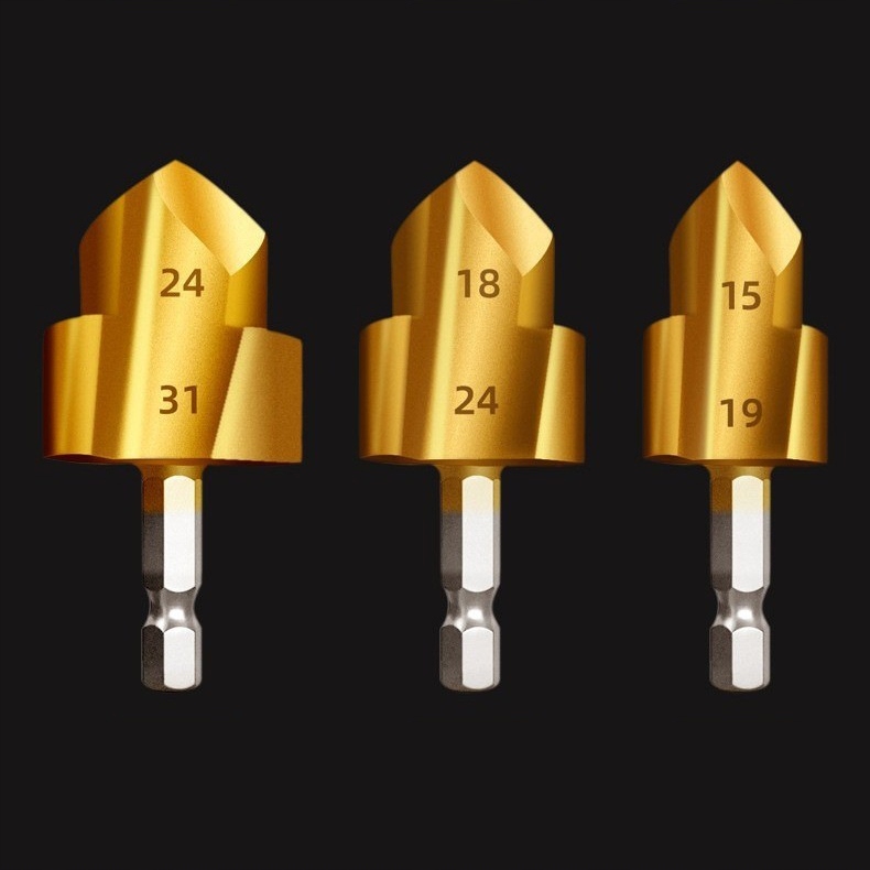 НАБІР З 3 СТУПІНЧЕНИХ СВЕРД ДЛЯ ТРУБ PPR / PVC / PE - 19 / 24 / 31 мм