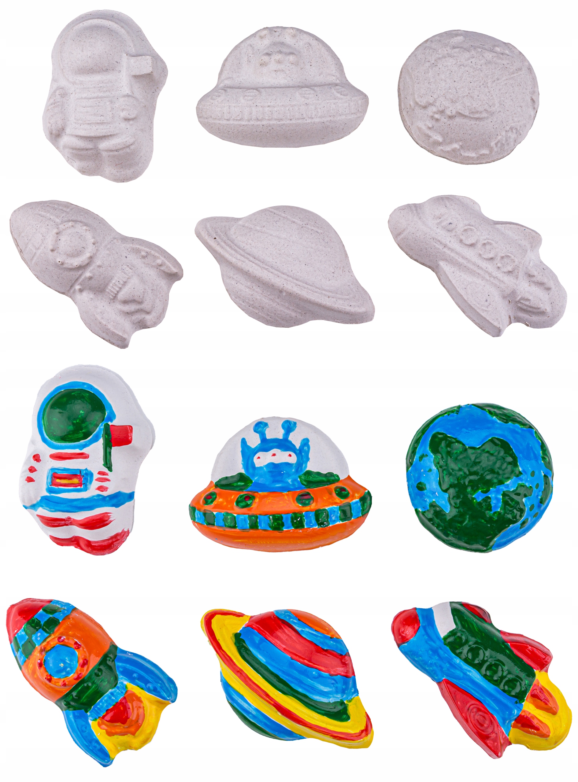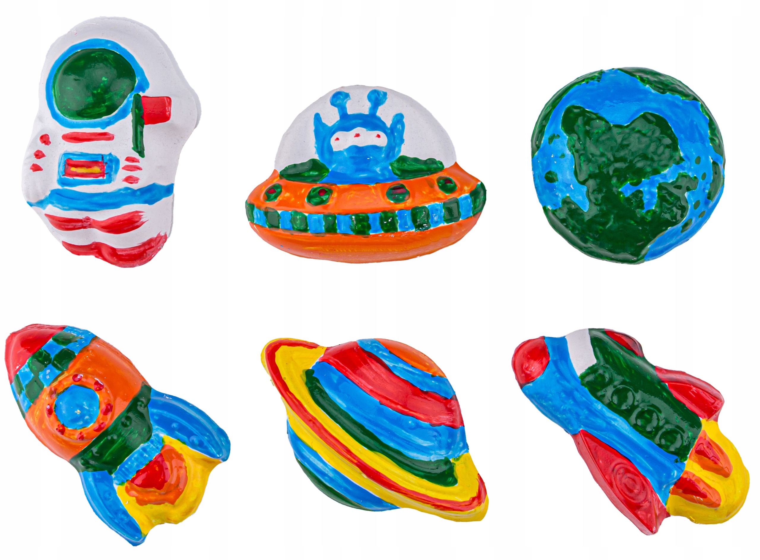 Гра з гіпсом — це велика розвага для кожної дитини. Наш набір дозволяє відлити до 6 різних візерунків. Потім ми розфарбовуємо їх за власним задумом, роблячи кожну з них унікальною.