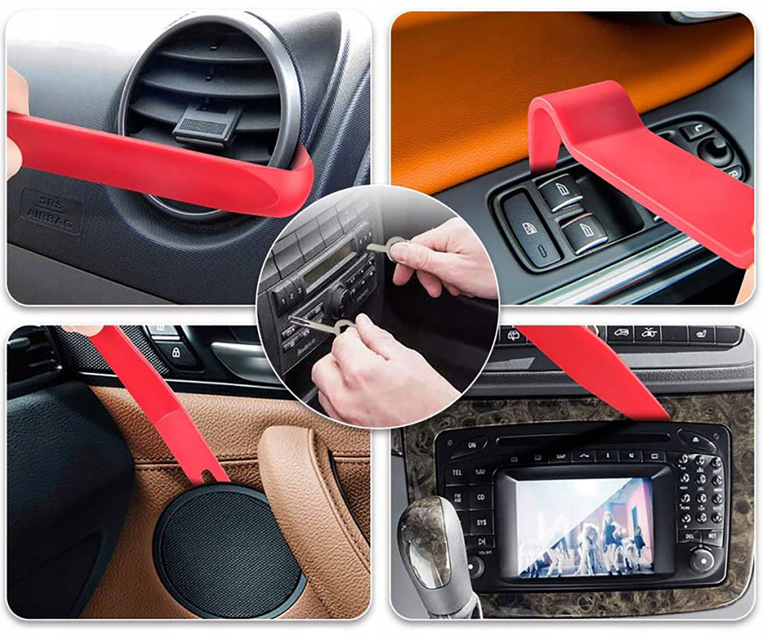 - ШИРОКЕ ЗАСТОСУВАННЯ - знімачі оббивки мають широку сферу застосування - вони успішно використовуються в оббивних і кузовних майстернях, а також в автосервісах, часто використовуються слюсарями.