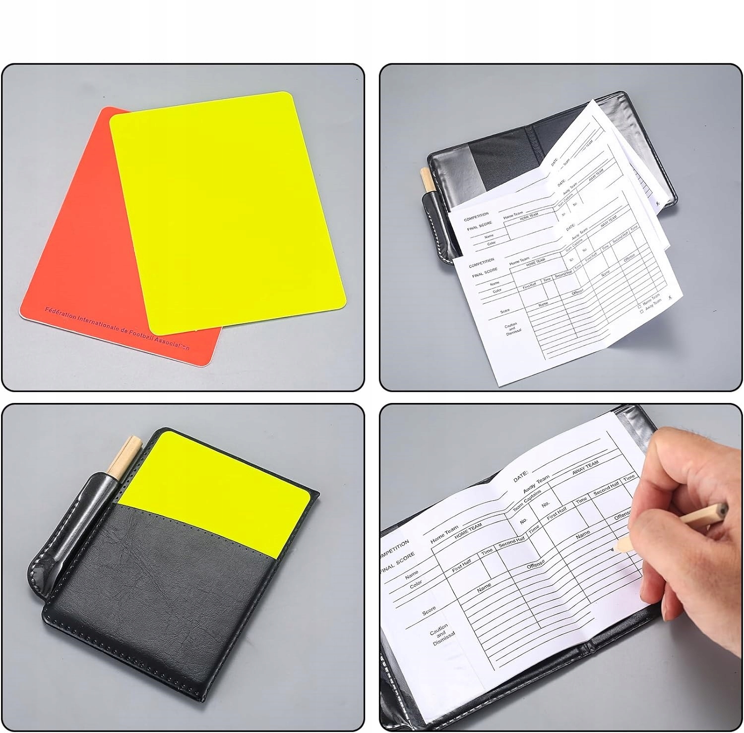 У нашому наборі червона картка, жовта картка, свисток + блокнот з олівцем. Може задовольнити потреби футбольного судді.