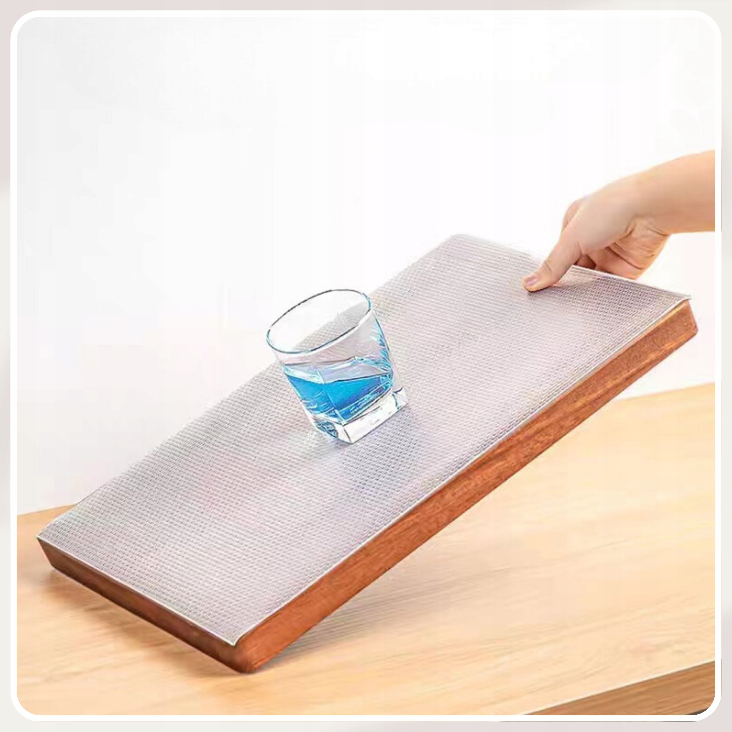 Так, килимок виготовлений із міцних матеріалів, стійких до ваги, тому його можна використовувати на полицях із книгами, документами та навіть інструментами.