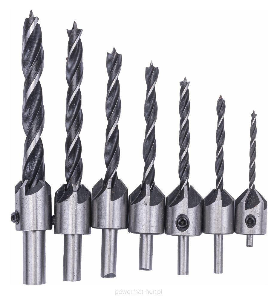 Набір із семи свердел по дереву із зенкерами + шестигранний ключ для регулювання