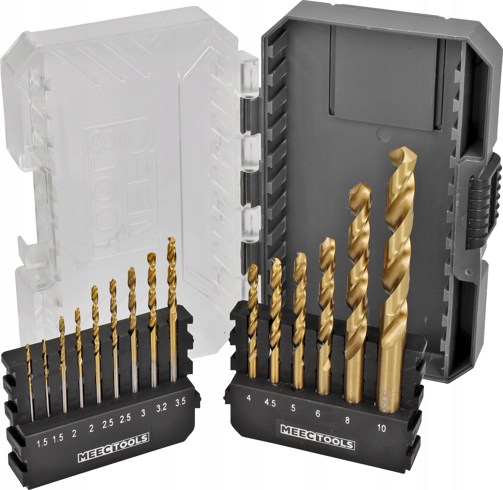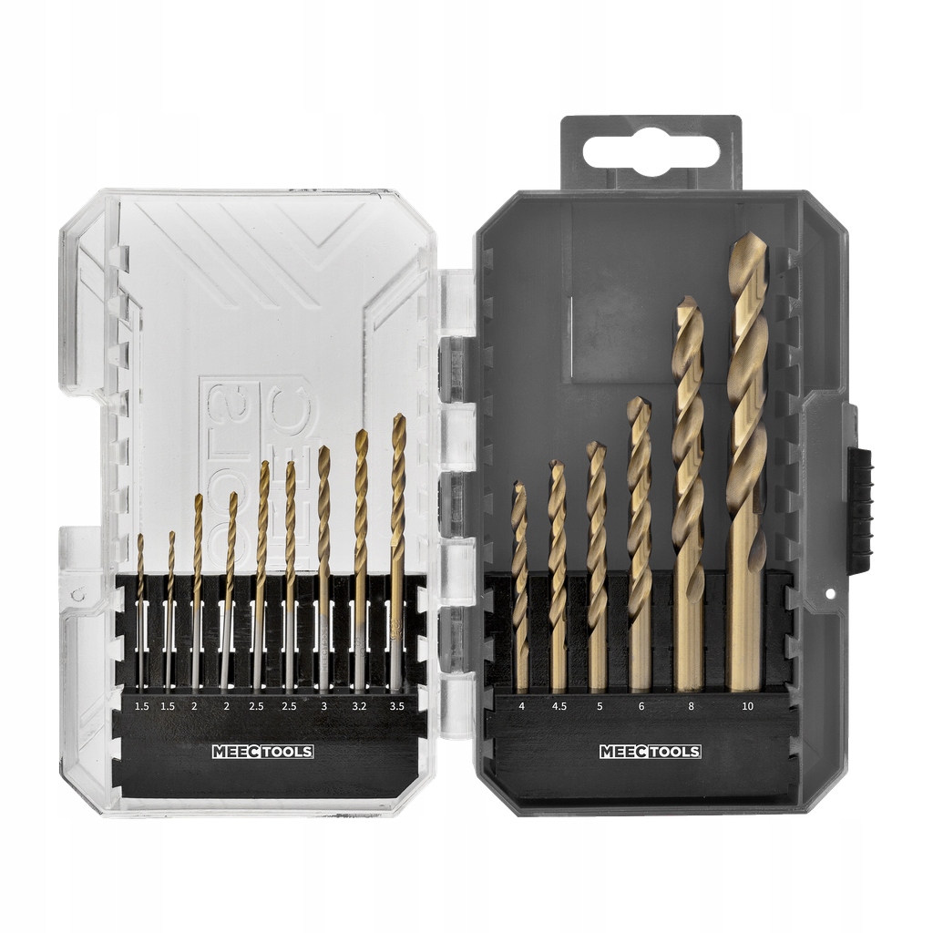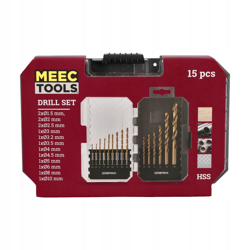 Цей набір від Meec Tools включає 15 свердел зі швидкорізальної сталі HSS. Вони підходять, зокрема, для роботи з деревом, пластиком, металом та алюмінієм. У набір входять свердла наступних розмірів: