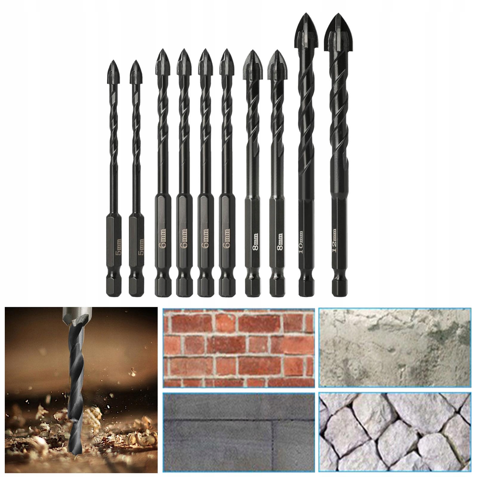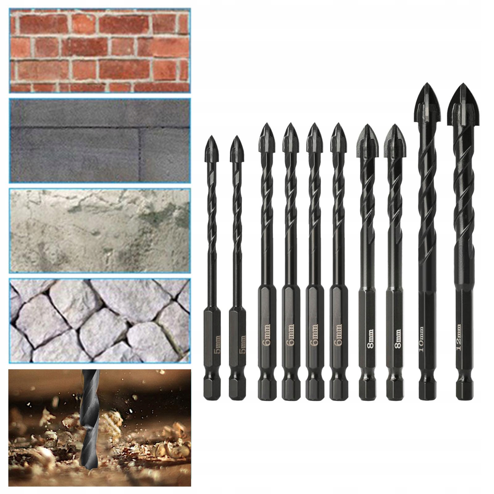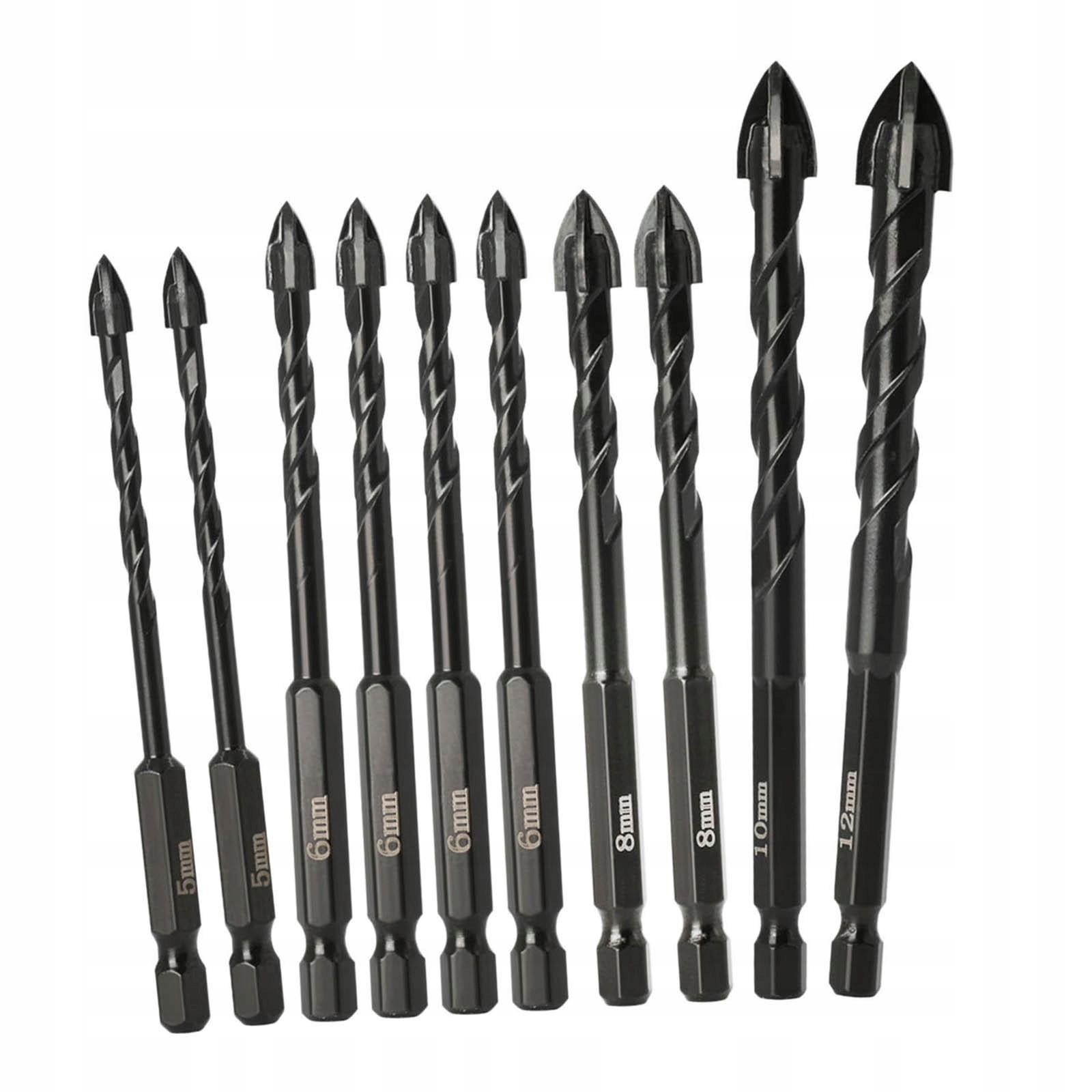 Набір свердел для кам'яної кладки з 10 предметів із шестигранним хвостовиком для настінної цементної плитки