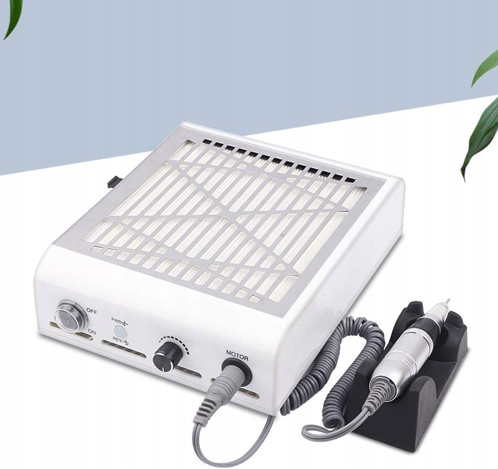 Багатофункціональна машина для нарощування нігтів 2 в 1 потужністю 60 Вт, функція видалення та полірування нігтів 2 в 1. Купівля одного еквівалентна купівлі двох. Два потужні пристрої, об’єднані в одному, забезпечують найкраще професійне використання. Можна використовувати для полірування нігтів, шліфування та збирання нігтів. Збирання цвяхів Вентилятор манікюрного пилососа може засмоктати деякі цвяхи. Змінний тяговий фільтр тонкого очищення, сильний вакуум, ефективно поглинає та фільтрує пил і підтримує чистоту навколишнього середовища. Професійна тренувальна полірувальна машина для нігтів висока швидкість обертання з потужністю 35000 об/хв низька вібрація регульована швидкість обертання позитивний і негативний напрямок обертання ефективно полірує нігті, не пошкоджуючи нігті вони будуть широко використовуватися для видалення ювелірних нігтів і гелевих нігтів акрилових нігтів МанікюрПедикюр відновлення нігтів і мозолів.. Швидкість можна регулювати вручну або ногою.Швидкість токарного верстата можна регулювати за допомогою ножної педалі або вручну. Також підходить для гравірування, гравіювання, зачищення, заточування, полірування, свердління. Практична електрична дриль для манікюру з використанням АБС-пластику та сплавів Безпека та захист навколишнього середовища Поворотні кнопки Просте управління Висока потужність 60 Вт Немає місця Низький рівень шуму Нелегко нагріватися під час роботи Підходить для домашнього використання та професійних манікюрних салонів.