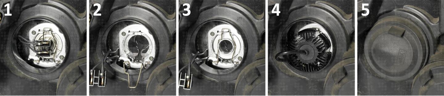 Крок 1-2: Від’єднайте пластину, що кріпить лампочку в патроні H7, і вийміть стару лампочку.